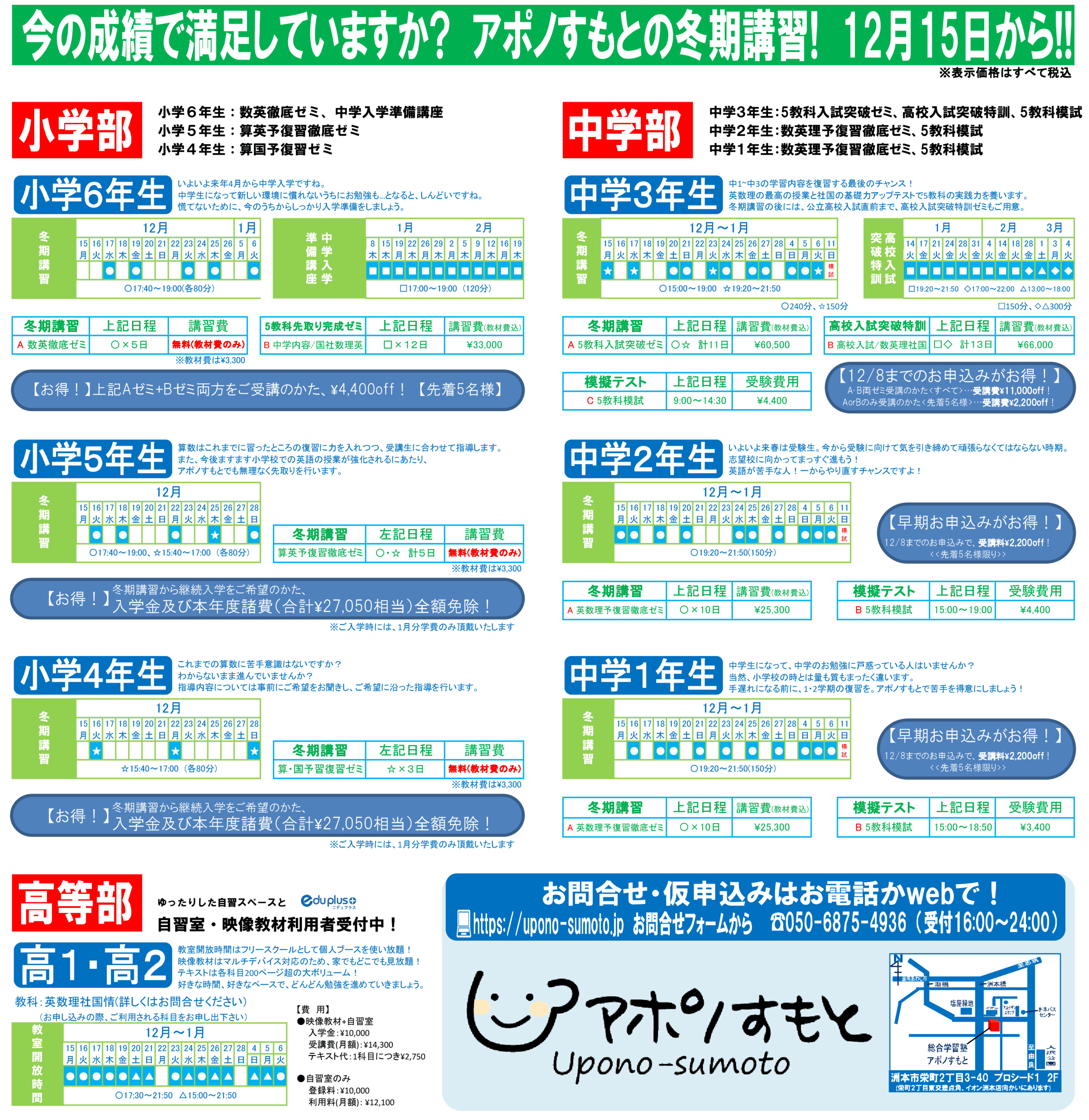 アポノすもと、今年も12/15から冬期講習を実施します!